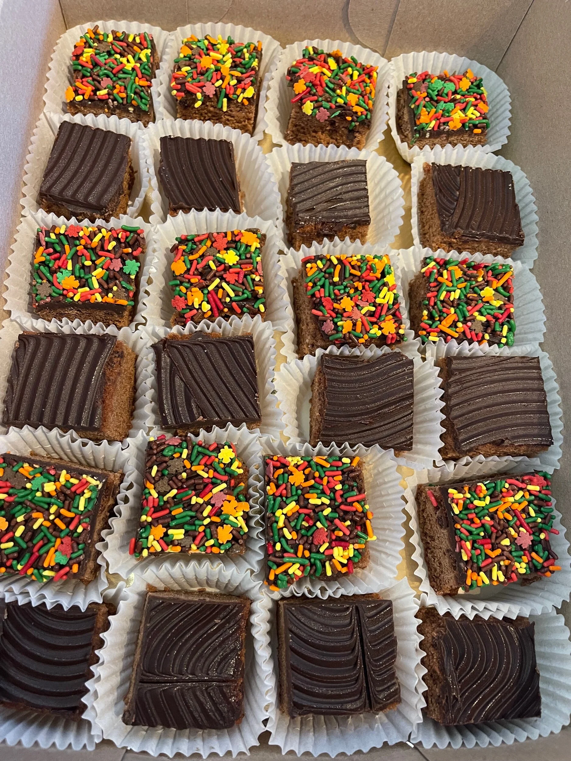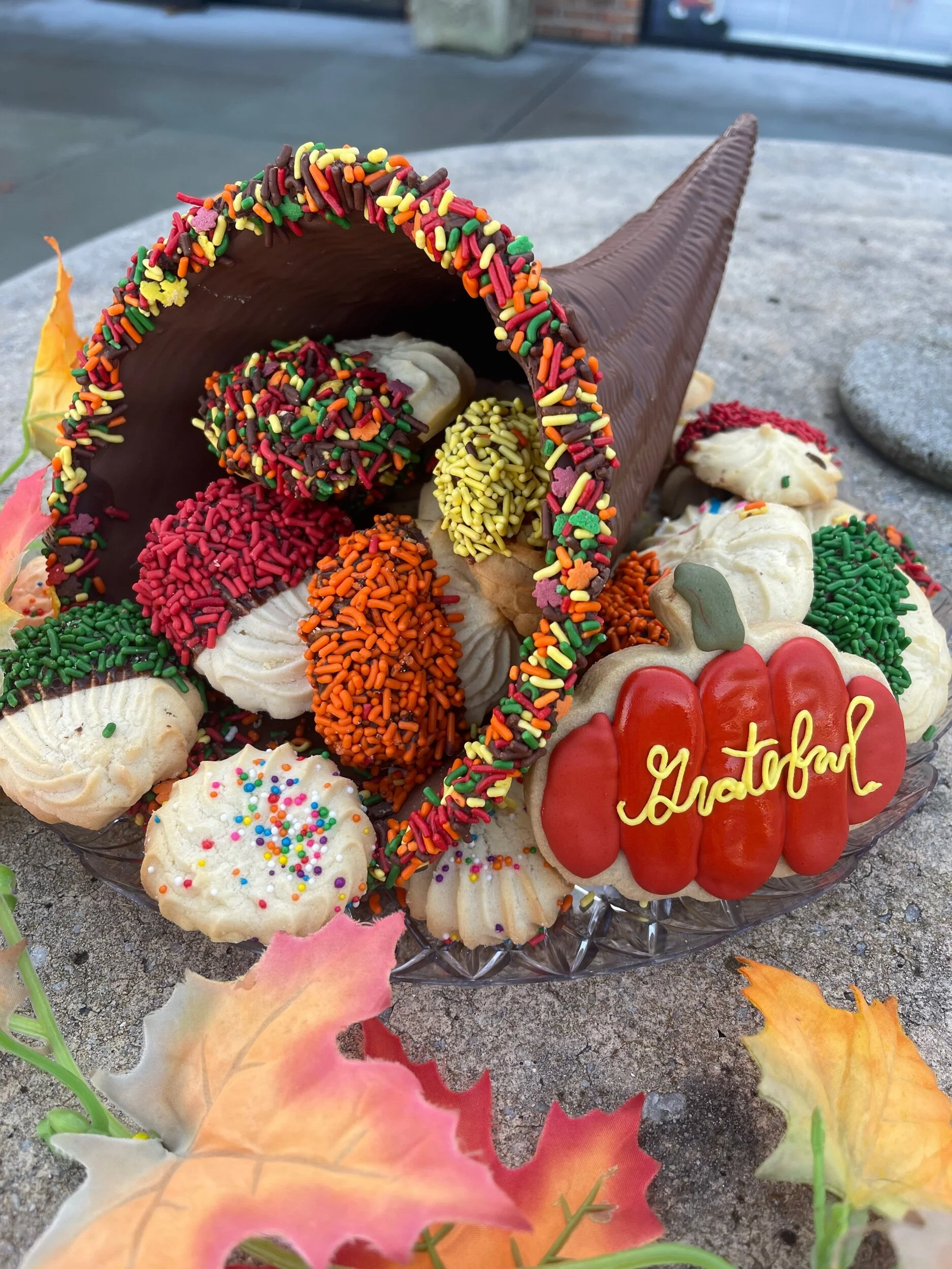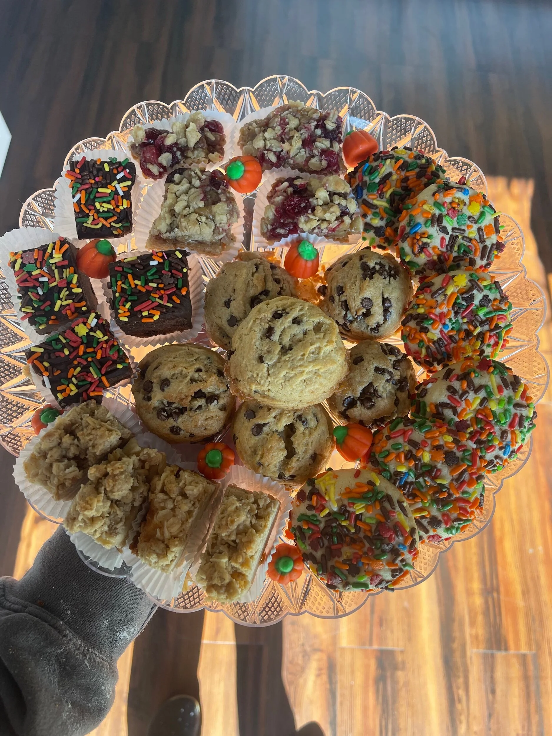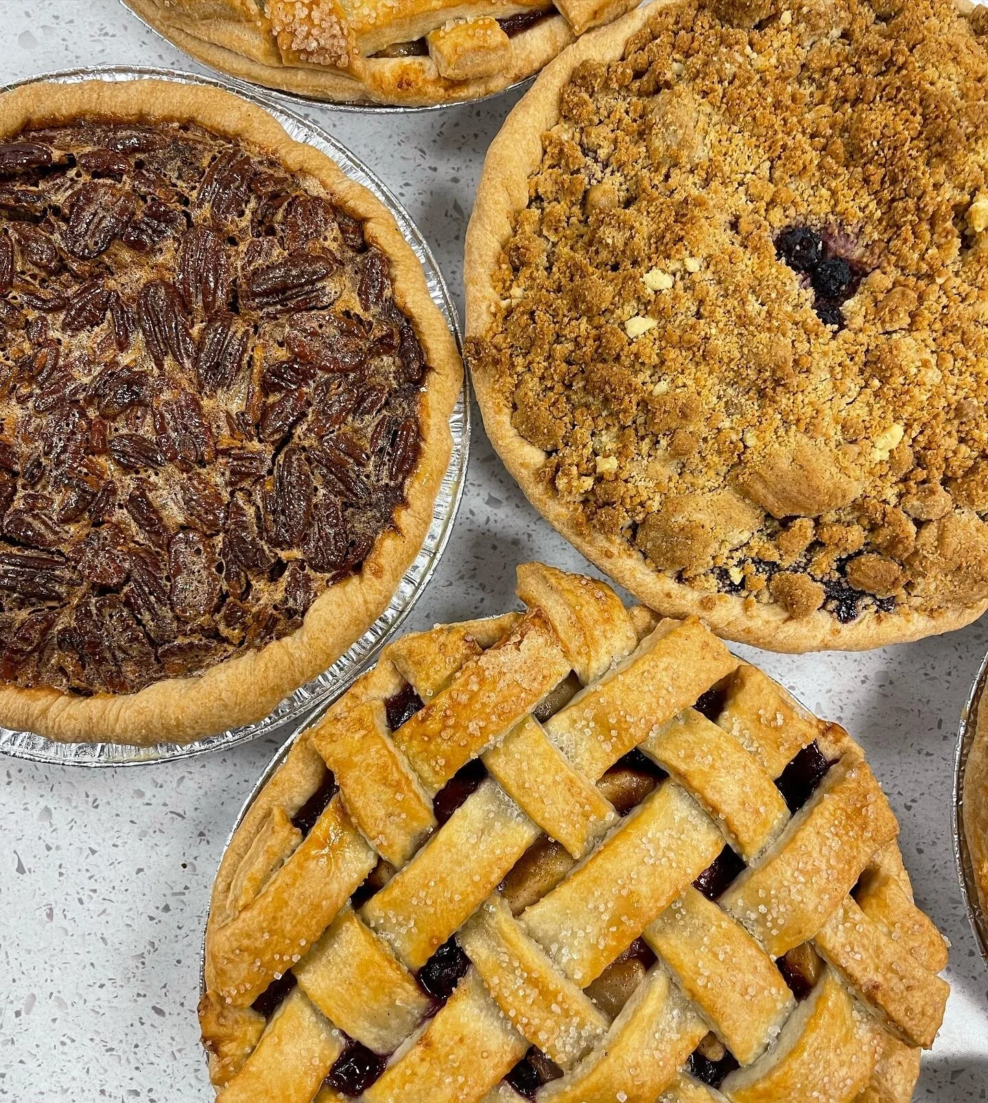 Thanksgiving Online Orders Harvest Platter $42.99 Classic platter $50.99 Chocolate Cornucopia Cookie Platter $56.99 Box of Mini Cannolis (12) $30.00 9inch slutty cheesecake $55.99 Turkey Cupcakes (pack of 4,6 or 12) from $19.99 Mini box of brownies (24 pieces) $36.00 Apple Crumb Pie $26.99 Apple Pie Lattice $26.99 Apple Blueberry Pie $26.99 Apple Blueberry Galette $26.99 Apple Cranberry Galette $26.99 Banana cream pie $26.99 Blueberry crumb pie $28.99 Blueberry lattice pie $28.99 Caramel Apple Crumb Galette $28.99 Coconut cream pie $25.99 Cherry Crumb Pie $28.99 Key Lime Pie $25.99 Peach Blueberry Galette $29.99 Peach Lattice Pie $29.99 Peach Galette $29.99 Peanut butter pie $28.99 Pecan Pie $29.99 Pumpkin Pie $26.99 Tri Pie w/ Crumb $29.99 Breakfast loafs $11.99 Pumpkin bread (avail GF) from $11.99 Gluten free breakfast loafs $14.99 Gluten free & Vegan apple pie $32.00 Gluten free apple pie $30.00 VEGAN Apple lattice pie $26.99 Italian Meat bread $11.99 Italian Bread $3.99 3lb Italian round $12.99 Apple Pie spice cake $52.99 Funfetti cake from $36.99 Pie- Caken $65.99